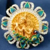 Eternal Love Radha Krishna Round Ring charming engraved Radha-Krishna is depicted in an enamel pattern in this beautiful ring, crafted with love. Bring divine grace of love into your life with this intricate Radha Krishna ring crafted in 11.946 net weight , gross weight of 11.770and diamond of 0.88ct