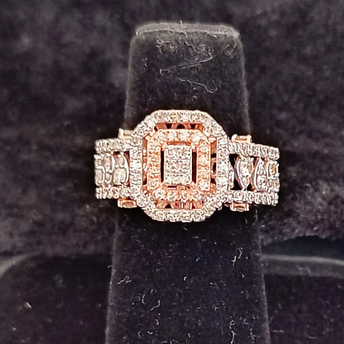 Add royalty to your western ensembles with this charming ring crafted in 14 karat rose gold, studded with diamonds.